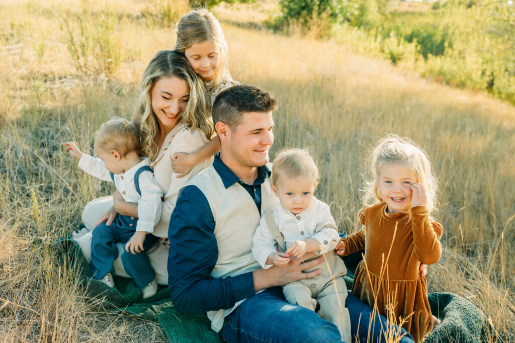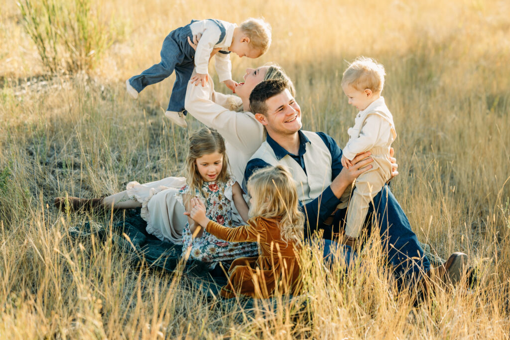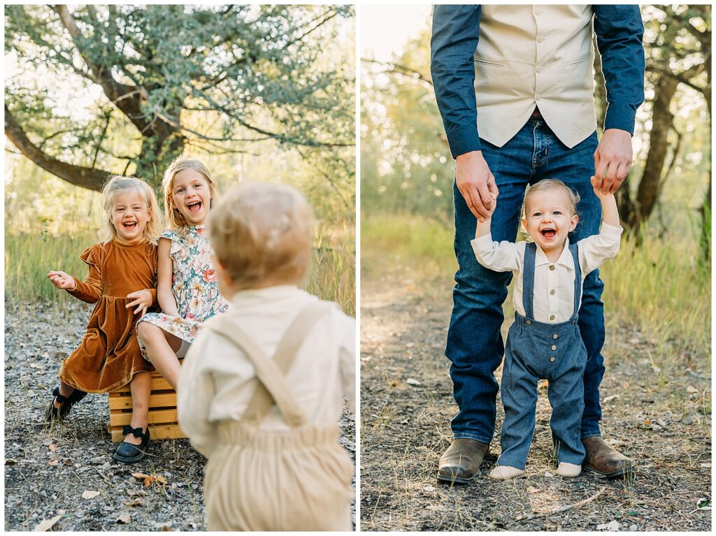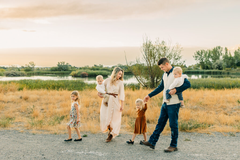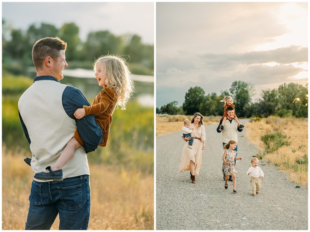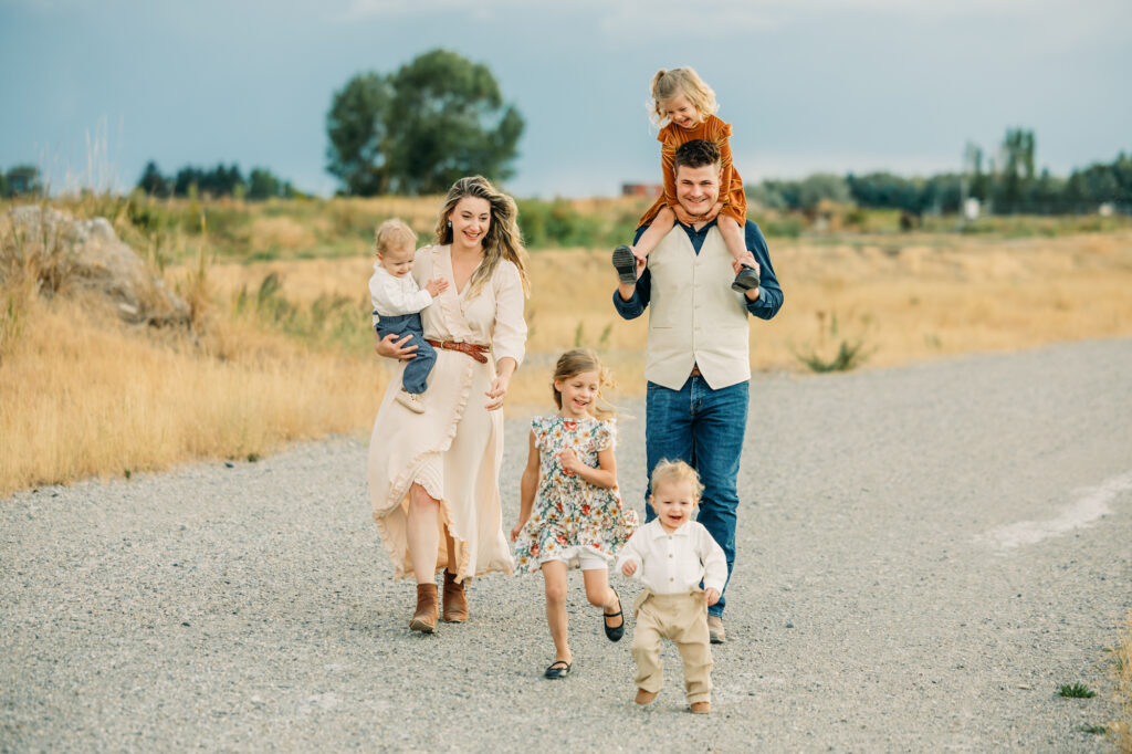 Idaho Falls Family photography can be very challenging. Young kids do not have the attention span to sit and smile at the camera. You are in a new place and that can make people uncomfortable. You have a semi-stranger posing you and telling you to look down a lens. I get it!! I’ve been doing this 12 years and some of my favorite photo sessions have been chaos. I’ve done Sierra’s family photos for two years now. She is another local photographer. She also have twin boys and very active young kids. I can tell you that by the end of this session we had gotten our steps in. And although it felt a tiny bit crazy, one thing that I think made this session a success was the parent’s ability to have fun in the moment, enjoy their kids, not get mad or frustrated, and play.