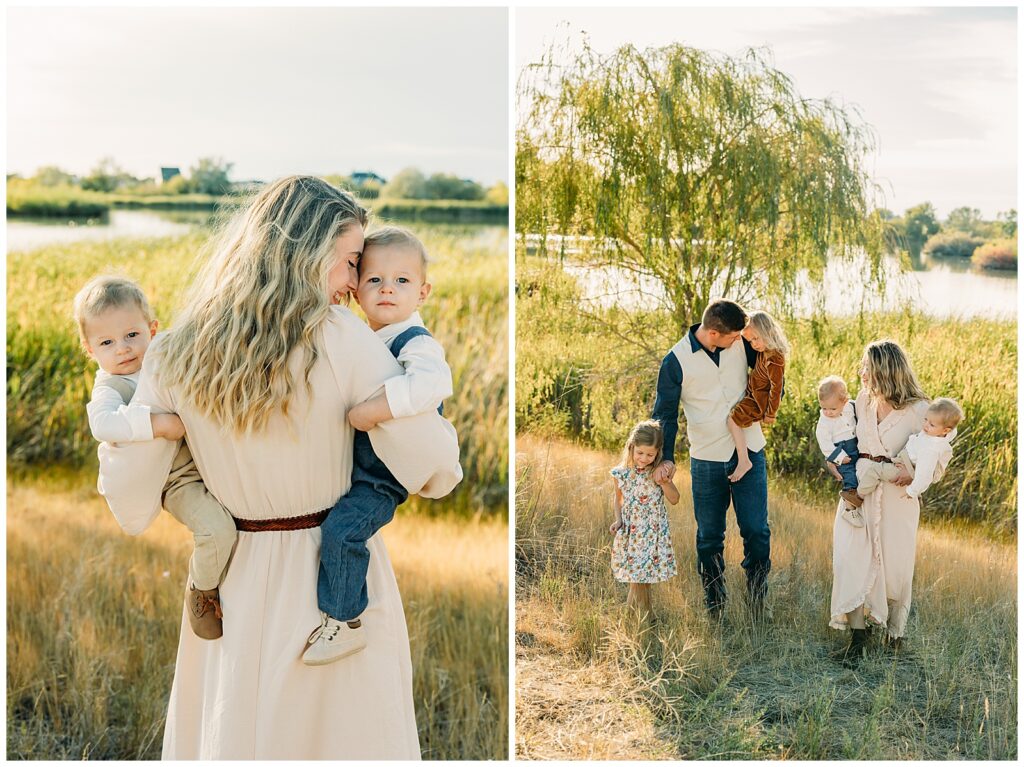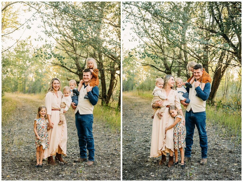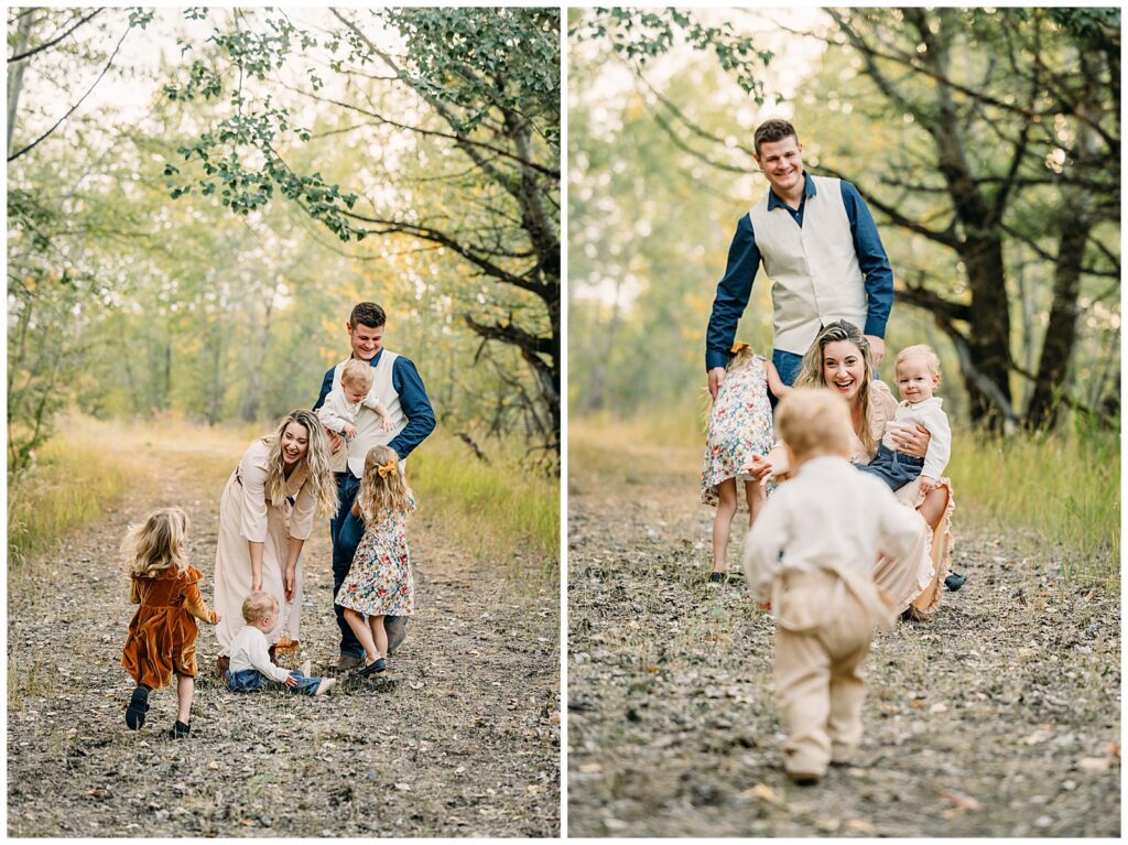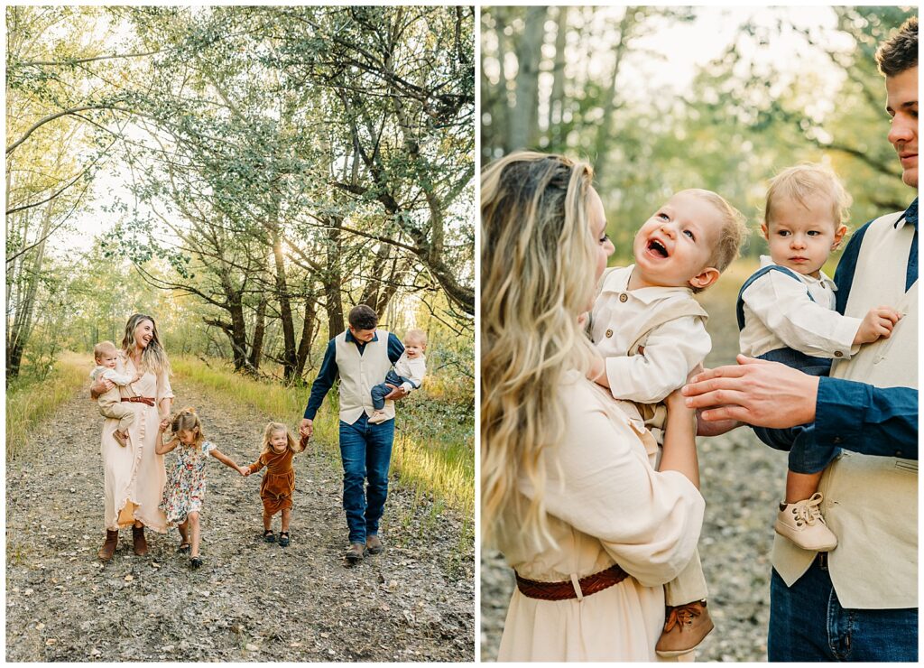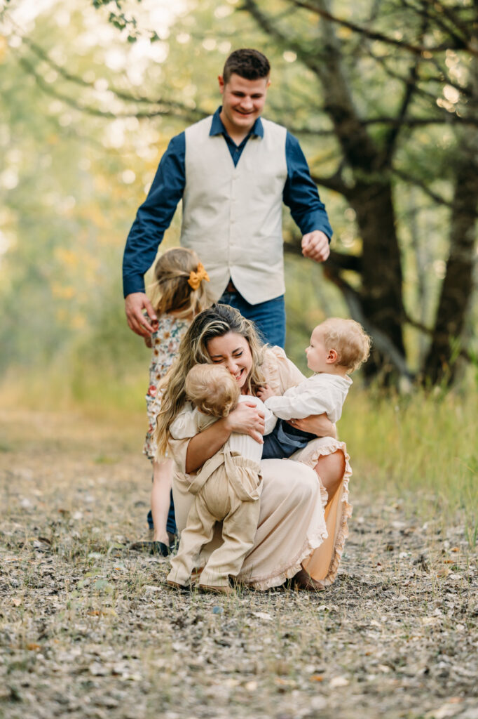 Idaho Falls Family photography can be very challenging. Young kids do not have the attention span to sit and smile at the camera. You are in a new place and that can make people uncomfortable. You have a semi-stranger posing you and telling you to look down a lens. I get it!! I’ve been doing this 12 years and some of my favorite photo sessions have been chaos. I’ve done Sierra’s family photos for two years now. She is another local photographer. She also have twin boys and very active young kids. I can tell you that by the end of this session we had gotten our steps in. And although it felt a tiny bit crazy, one thing that I think made this session a success was the parent’s ability to have fun in the moment, enjoy their kids, not get mad or frustrated, and play.